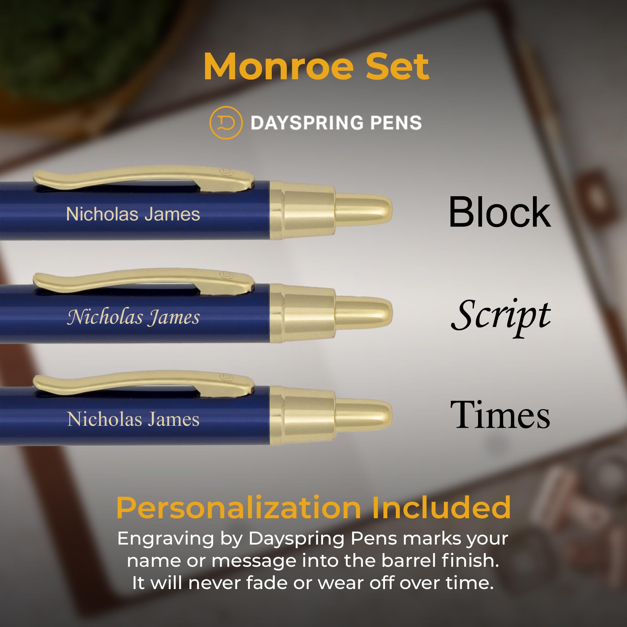 - Gift-ready packaging: Both instruments arrive together in a Dayspring Pens gift box for direct gifting; a personalized engraved Monroe set works as a named gift for a new graduate, nurse, teacher, retiree, or promoted employee
