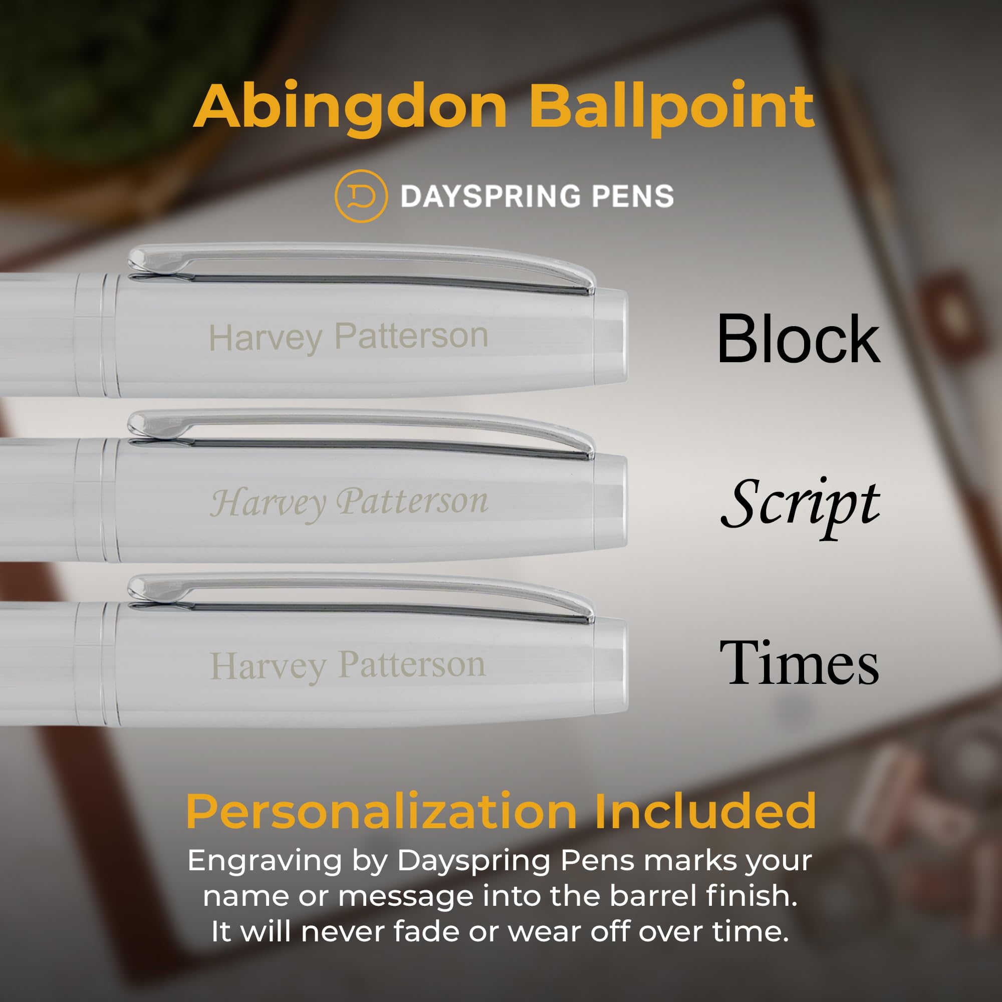 - Ideal Graduation Gift: Presented in a Dayspring Pens gift box, the Abingdon, engraved and polished, is the perfect gift for graduates and office gifts. Celebrate their achievement with a present they'll cherish and use for years to come.