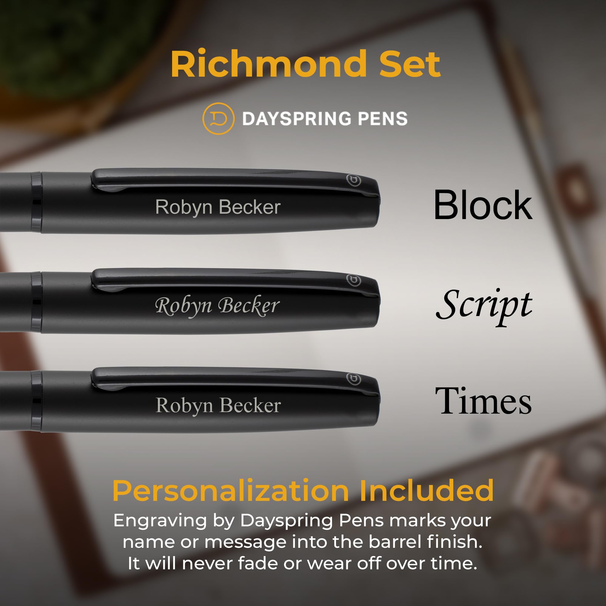Dayspring Pens Richmond Engraved Ballpoint Pen and 0.7mm Pencil Set, Matte Black, Parker G-2 Compatible Ink, Personalized Gift for Graduation, Career Advancement, New Job, Birthdays, Gift Box Included