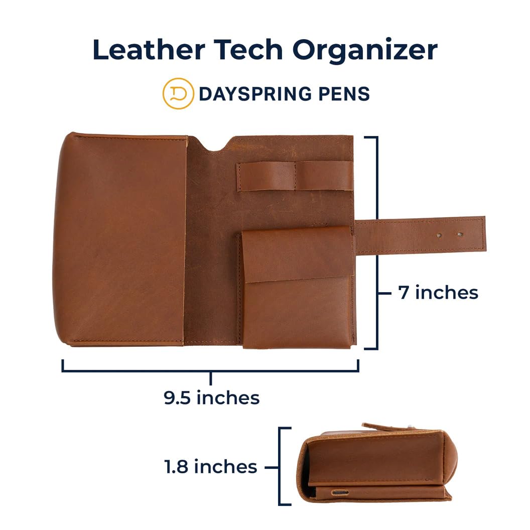 Dayspring Pens | Tech Cord & Accessories Travel Organizer for Electronics - Full Grain Leather. Add Organization to Your Power Cords and Cables. Message or Monogram Available.