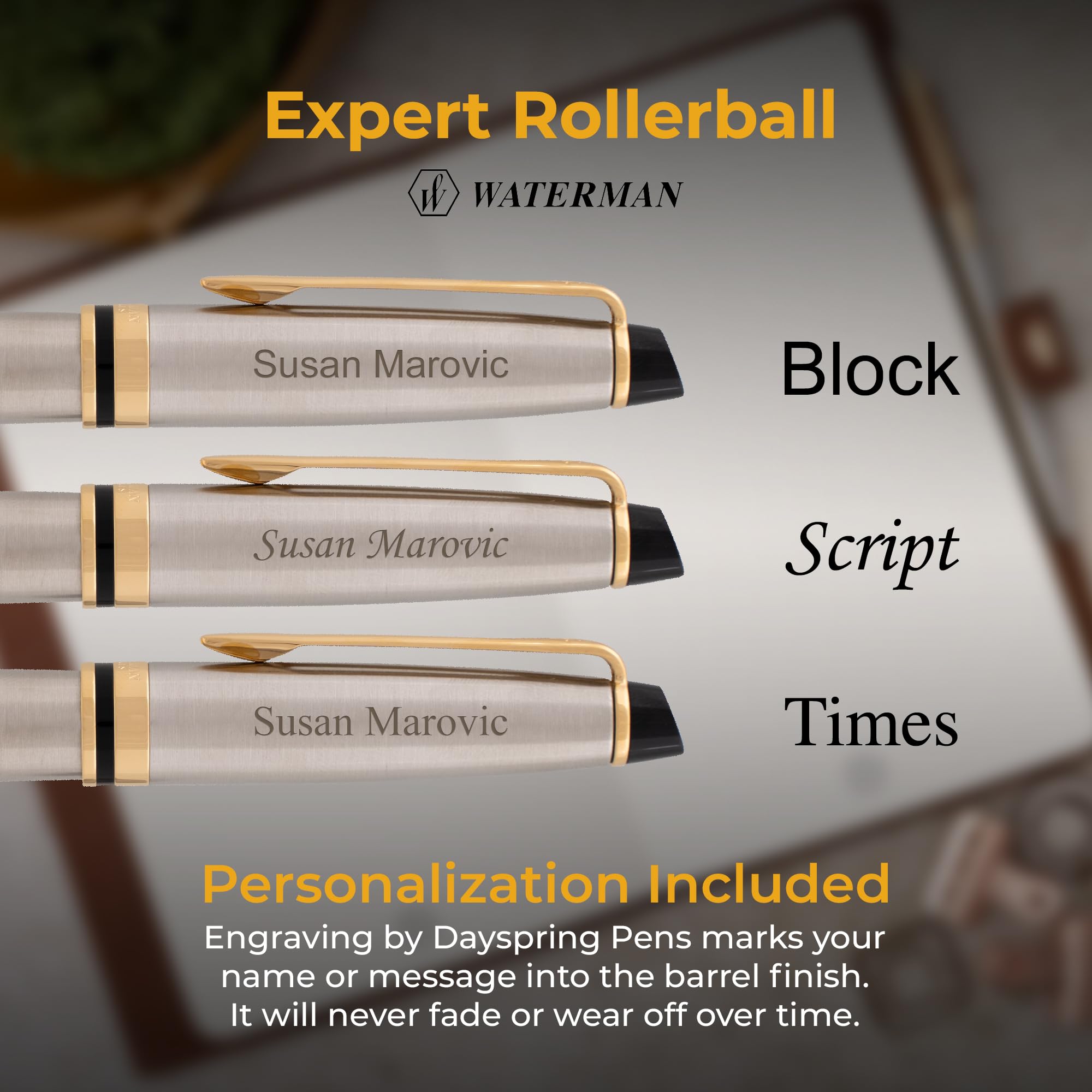 - Personalized Engraving: Make each pen uniquely yours with up to 30 characters for engraving, harmonizing with the pen's aesthetics. The engraving color is gold to match the appointments.