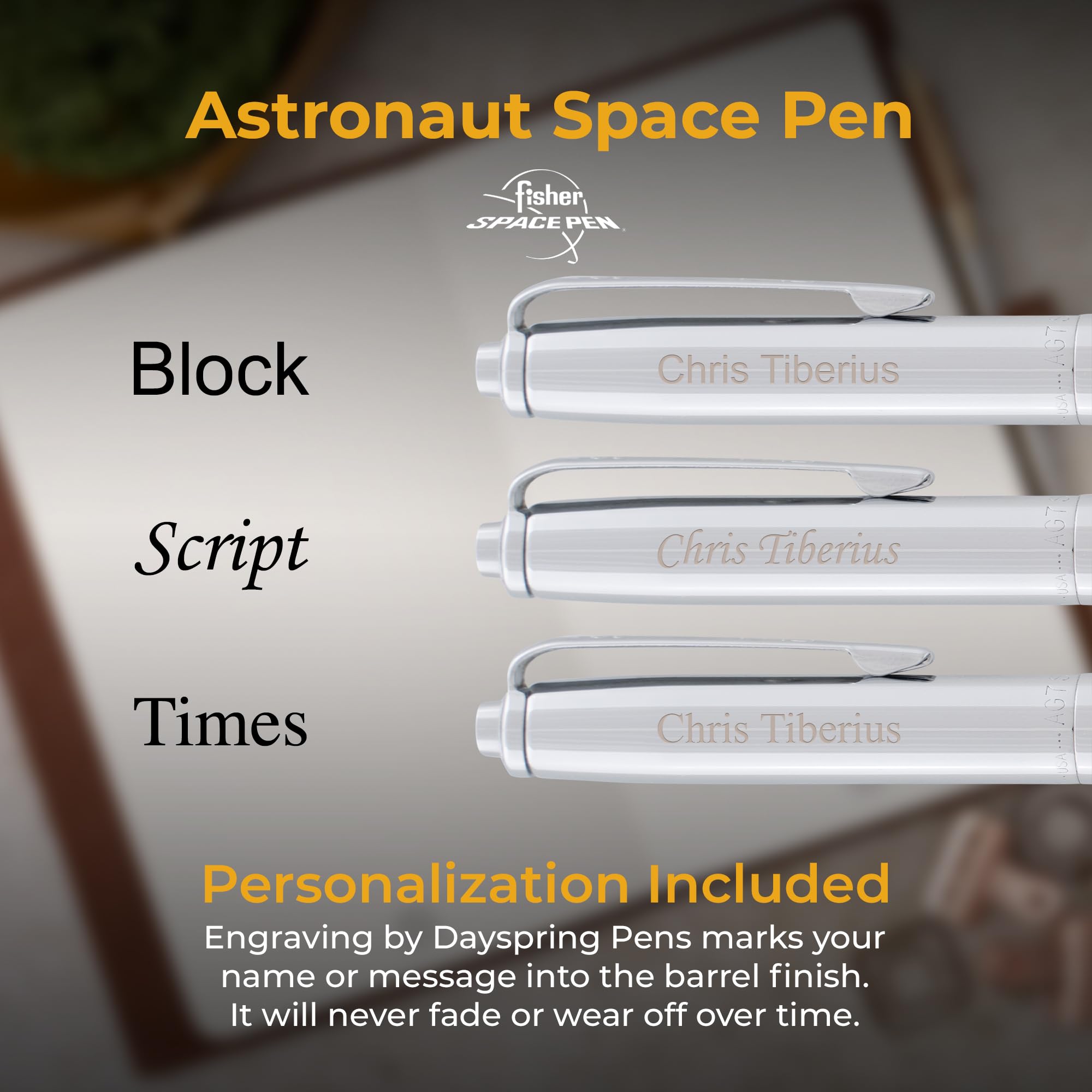 - Custom engraving included: Up to 30 characters are permanently engraved in a tone-on-tone brass finish on the barrel, creating a named or monogrammed pen for a professional, collector, or space enthusiast