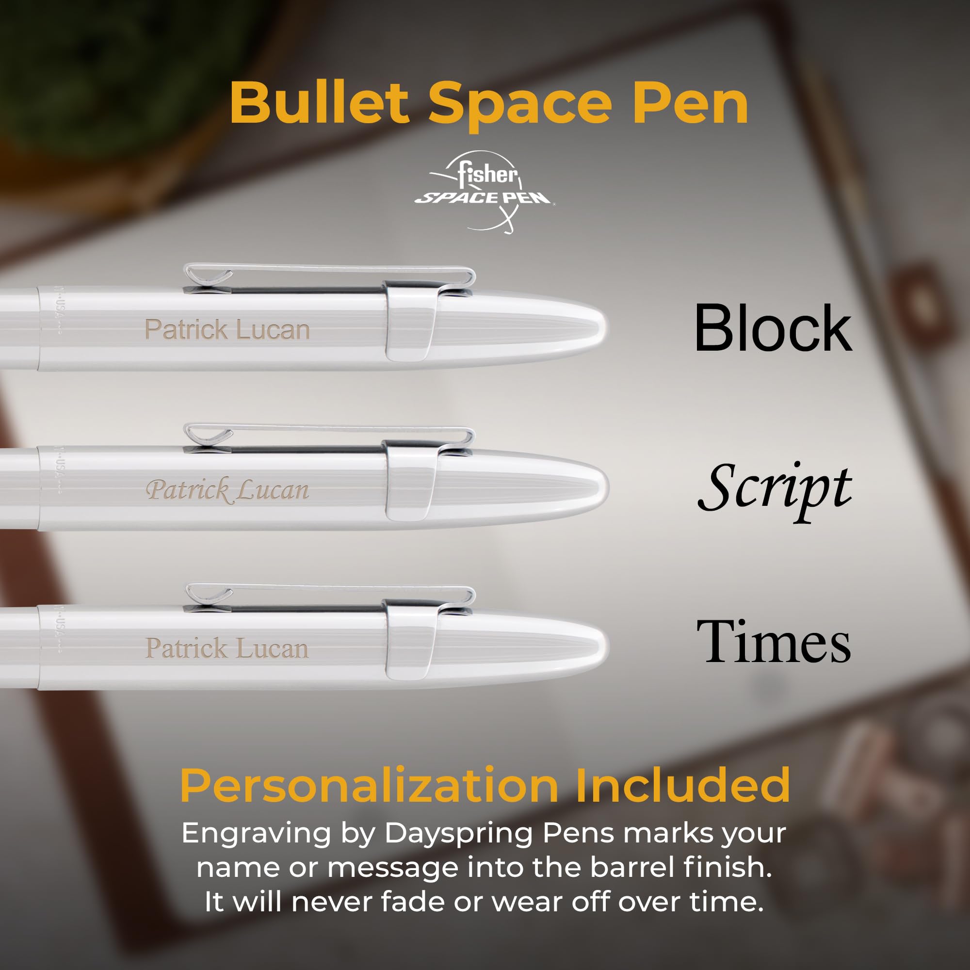 Personalized Fisher Bullet Space Pen with Clip | Chrome Finish with Custom Engraving | Pressurized Ink | For Professionals and Adventurers